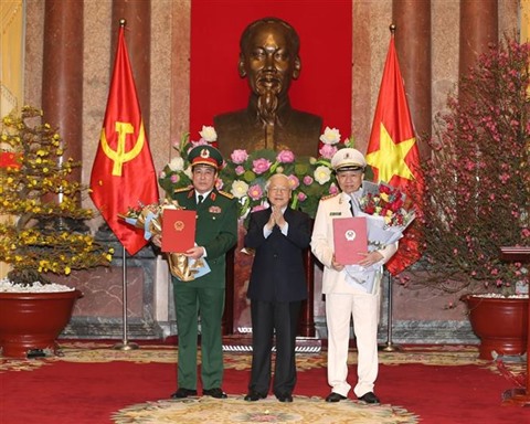 "L’avancement de grade dont bénéficient les camarades Tô Lâm et Luong Cuong traduit la confiance et l’intérêt profonds du Parti, de l’État et du peuple pour les forces armées", a déclaré le secrétaire général du Parti et président de la République, Nguyên Phu Trong.
