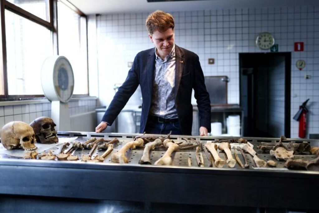 Deux crânes, trois fémurs, des os coxaux - de la zone hanche/bassin - ayant vraisemblablement appartenu à quatre combattants; "une telle quantité d'ossements c'est vraiment unique !", s'exclame l'historien Bernard Wilkin, devant une table d'autopsie de l'Institut de médecine légale de Liège (Est).