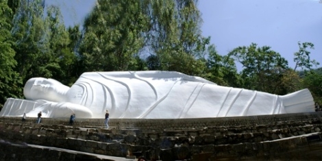 Pour sa part, la statue de Bouddha entrant dans le Nirvana sur la montagne Tà Cu mesure 49 mètres de long. Faite en béton, elle a été mise en chantier en 1963 et a été achevée en 1966, sous l’égide de l’architecte Truong Dinh Y. Le 2 janvier 2006, elle a aussi reçu le record vietnamien.