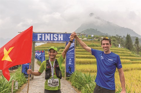 | En 2017, Trân Duy Quang (gauche) est devenu le premier Vietnamien à remporter la médaille d’or de l’ultra-trail de Sa Pa (100 km) après avoir fini la course en 13 heures 17 minutes. |