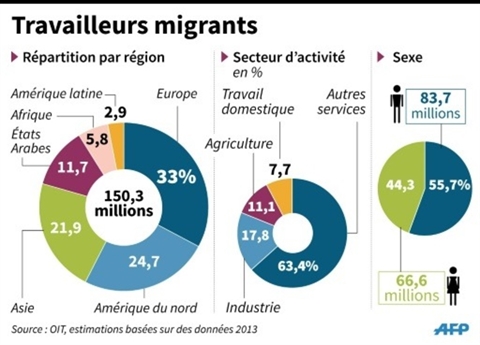 L'OIT dénombre ainsi 150,3 millions de travailleurs migrants dans le monde.