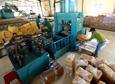 | La chaîne de transformation du caoutchouc dans l'usine de Chu Pah, province de Gia Lai (hauts plateaux du Centre). |