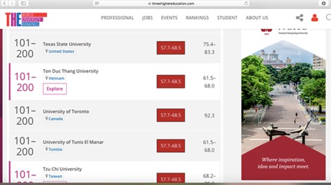 | L'Université Tôn Duc Thang se classe dans la lise des 200 universités ayant la meilleure qualité de l'éducation du monde. |