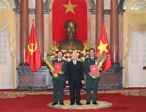 Le secrétaire général du Parti et président de la République, Nguyên Phu Trong, qui est également secrétaire de la Commission militaire centrale, président du Conseil de défense nationale et de sécurité et commandant en chef des forces armées, a remis les décisions sur cette promotion aux vice-ministres Nguyên Tân Cuong et Vo Minh Luong lors d'une cérémonie à Hanoï vendredi 22 janvier.