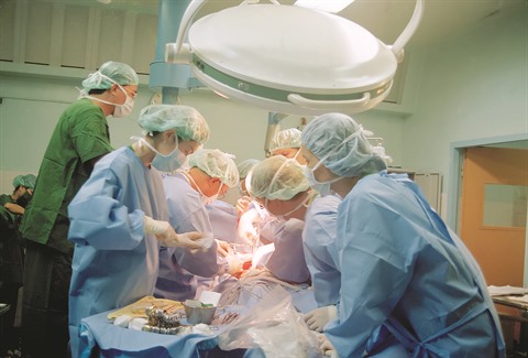 | Le Pr.-Dr. Nguyên Thanh Liêm et ses collègues effectuant une opération chirurgicale à l’Hôpital central de pédiatrie, à Hanoï. |