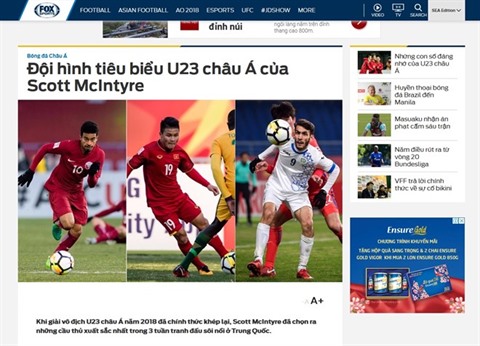 Auparavant, la page web Fox Sport Asia avait dévoilé un clip saluant l’équipe U23 du Vietnam.