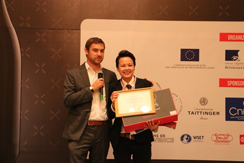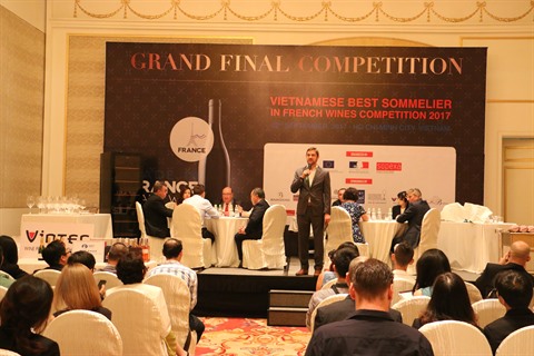 | Le panorama de la compétition des meilleurs sommeliers de vin français, tenu le 22 septembre à Hô Chi Minh-Ville. |