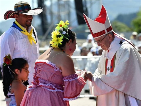 | Le pape François (droite) à Temuco, au Chili, le 17 janvier. |