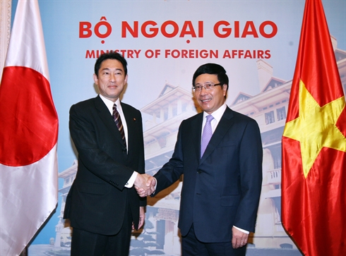 | Le vice-Premier ministre Pham Binh Minh (droite) et le ministre japonais des Affaires étrangères Fumio Kishida, |