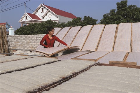 | Séchage des nouilles de riz Chu à Bac Giang (Nord). |