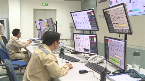 | Des ingénieurs de Duyên Hai 1 contrôlent les machines thermiques par ordinateurs. |