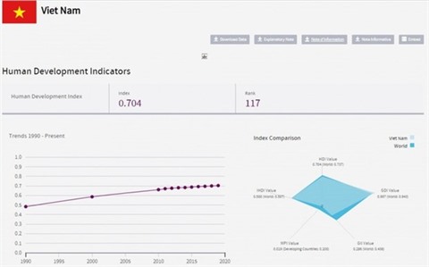 Le Vietnam fait désormais partie du groupe des pays à l’indice de développement humain élevé. C’est ce qui ressort du rapport sur le développement humain en 2020, rapport qui a été publié à la mi-décembre 2020 par le Programme des Nations unies pour le développement au Vietnam et par le ministère vietnamien du Plan et de l'Investissement.