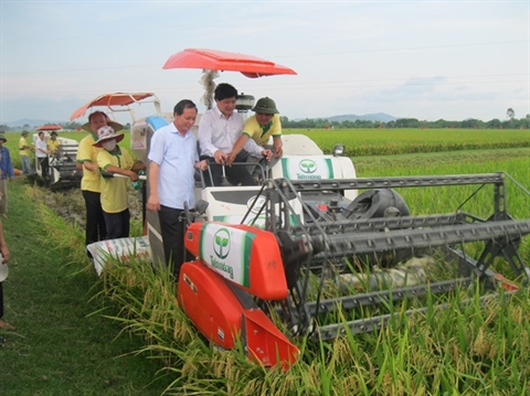| Un nouvelle moissoneusse dans une rizière de la province de Thanh Hoa (Centre). |