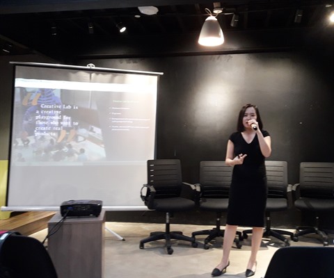 | Bùi Câm Vân présente les activités de Creative Lab by UP. |