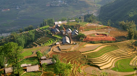 | Les rizières en terrasse qui descendent des flancs des montagnes environnantes en formant un étonnant patchwork de couleurs sont l’une des attractions de Sa Pa. |