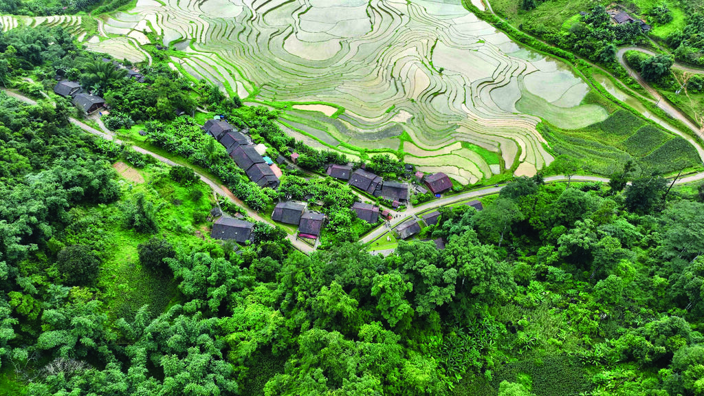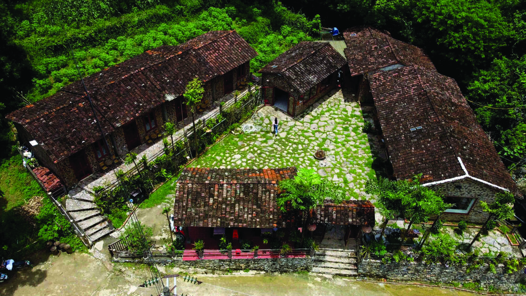| Vue aérienne du village de tourisme communautaire de Hoài Khao, district de Nguyên Binh, province de Cao Bang.  |