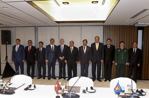 | Les ministres de la Défense des pays de l’ASEAN le 4 juin à Singapour. |