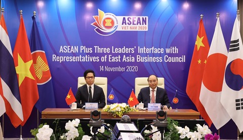 Lors de la session de dialogue, le représentant de l'EABC a proposé aux dirigeants de l'ASEAN + 3 d'envisager d'inclure les recommandations du milieu d’entreprises dans les politiques de relance post-pandémie de COVID-19, saluant la possibilité de signer Partenariat économique régional global (RCEP) dans l’Année de présidence du Vietnam.