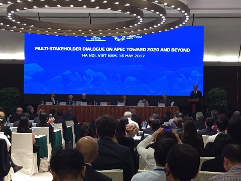 | Photo de famille des délégués participant au dialogue multipartite sur l’APEC d’ici 2020 et au-delà, le 16 mai à Hanoï. |
