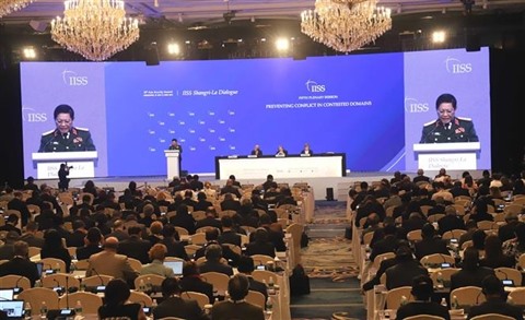 | Le ministre vietnamien de la Défense, Ngô Xuân Lich, prononce un discours à la 5e session plénière du Dialogue Shangri-La 2019. |