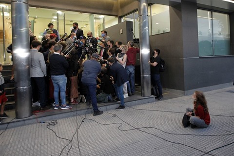 | Le médecin de Diego Maradona, Pedro Luque, parle aux journalistes à la sortie de la clinique privée d'Olivos, près de Buenos Aires, le 6 novembre. |