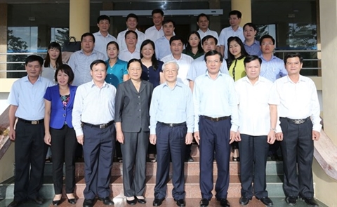 | Nguyên Phu Trong (1er plan, 4e à droite) prend la pose avec des autorités |