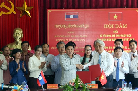 | Cérémonie de signature d'un protocole d’accord sur l’intensification des activités de développement touristique entre Diên Biên et Luang Prabang. |