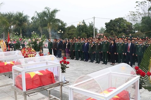 Une cérémonie de commémoration et d’inhumation des restes de 15 soldats volontaires vietnamiens tombés au Laos a vu la participation du comité de pilotage de la recherche, du rassemblement et de l'identification des restes des soldats au champ d'honneur (Comité national de pilotage 515) de la 2e zone militaire du Vietnam, des représentants du Comité de travail spécial du gouvernement du Laos et ceux de six provinces du Nord au Laos.