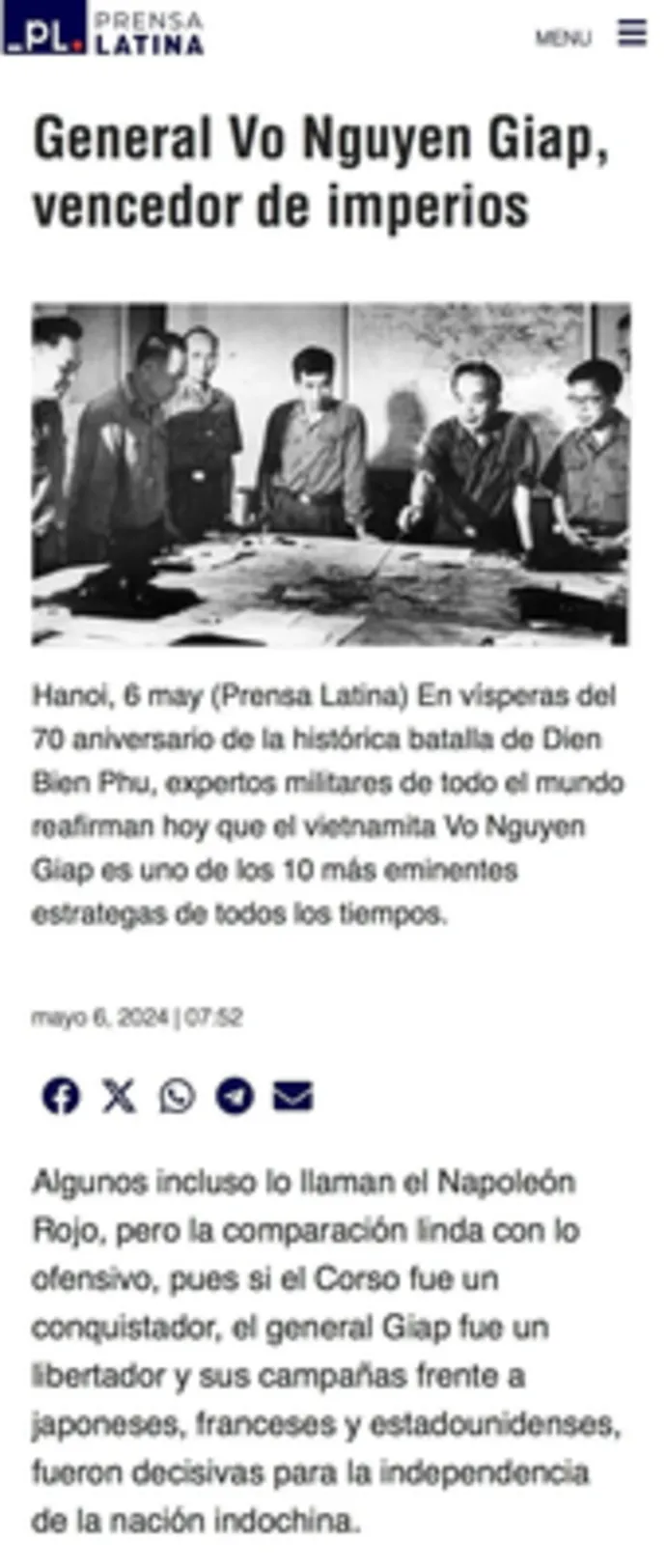 >> Prensa Latina : le Général Vo Nguyên Giap, "stratège militaire éminent"