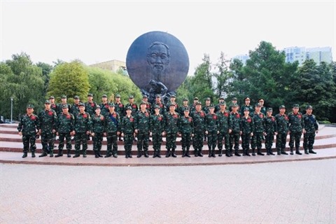 | La délégation de l'Armée populaire vietnamienne participant aux Army Games 2021 à côté du Monument du Président Hô Chi Minh à Moscou (Russie). |