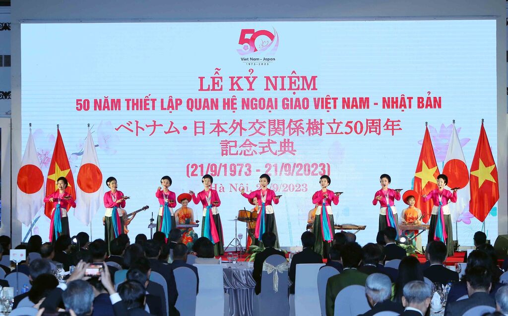 | Représentation artistique lors de la célébration du 50e anniversaire de l’établissement des relations diplomatiques Vietnam - Japon, le 21 septembre 2023 à Hanoï. |