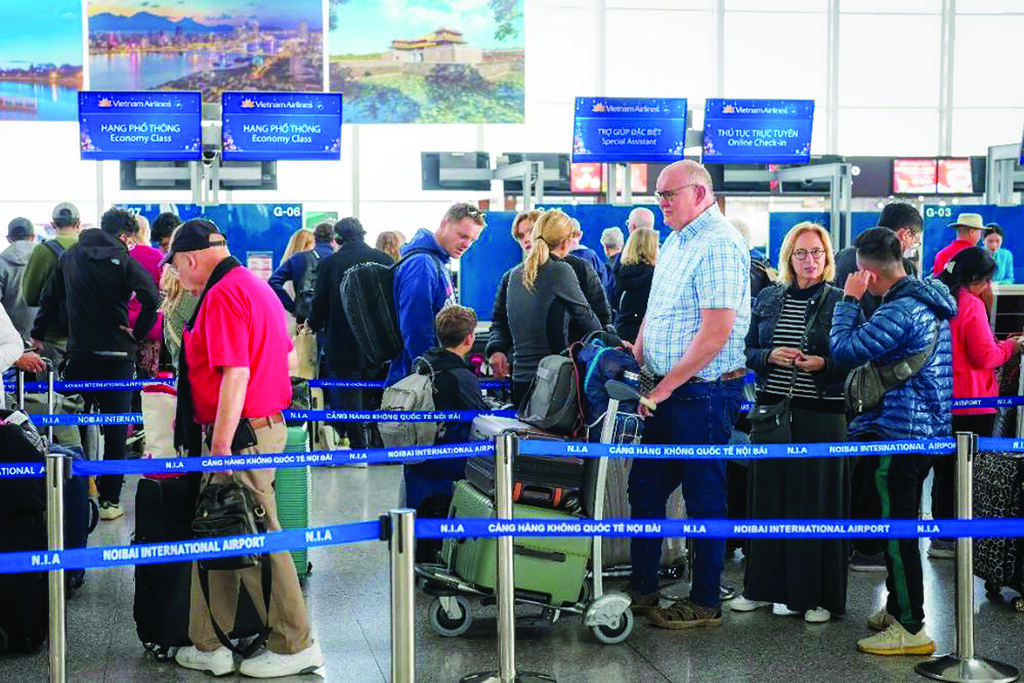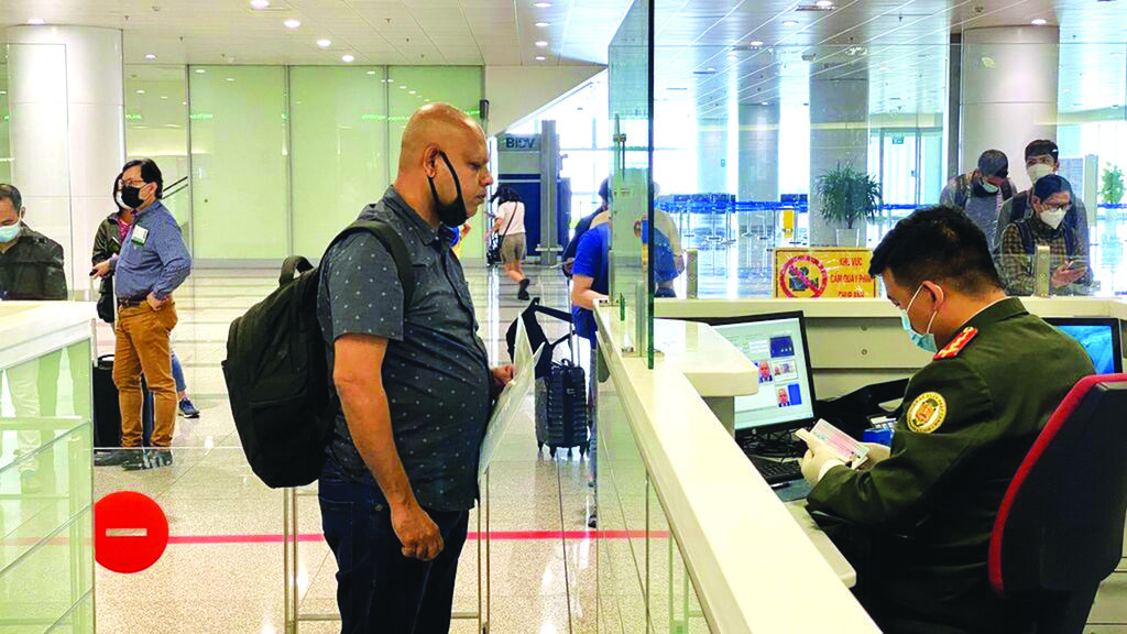 | Un étranger effectuant des formalités d’entrée à l’aéroport international de Nôi Bài, à Hanoï. |