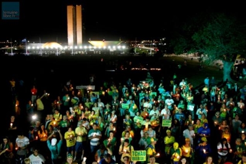 | Manifestation devant le Congrès à Brasilia pour réclamer la destitution de Dilma Rousseff, le 16 avril. |