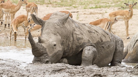 | Un rhinoceros dans le parc Kruger, en Afrique du Sud. Photo . AFP/VNA/CVN |