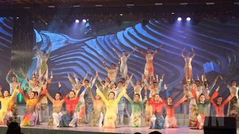 | Un numéro artistique représenté lors du dîner de gala « Pays merveilleux », le 6 septembre, à Hô Chi Minh-Ville. |