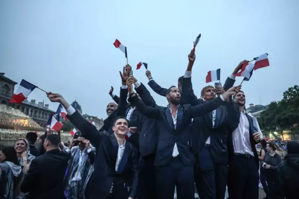"Un moment d'immense fierté pour Berluti" a écrit sur X sa maison mère, LVMH, alors que la péniche de l'équipe de France fermait la parade sur la Seine.