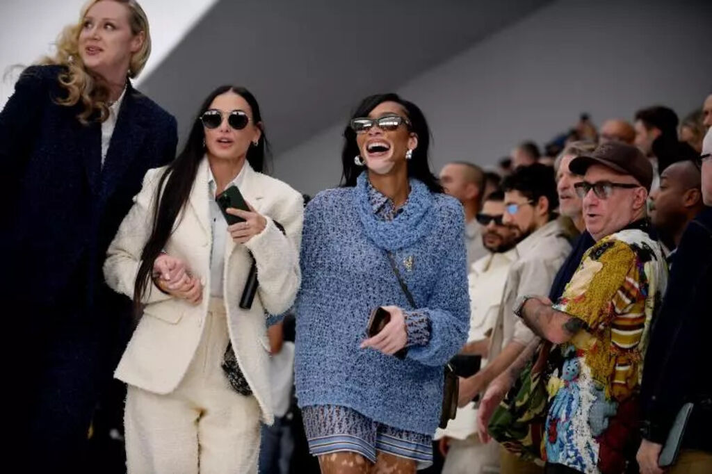 | L'actrice américaine Demi Moore (centre) au défilé Dior homme à Paris, le 23 juin. |