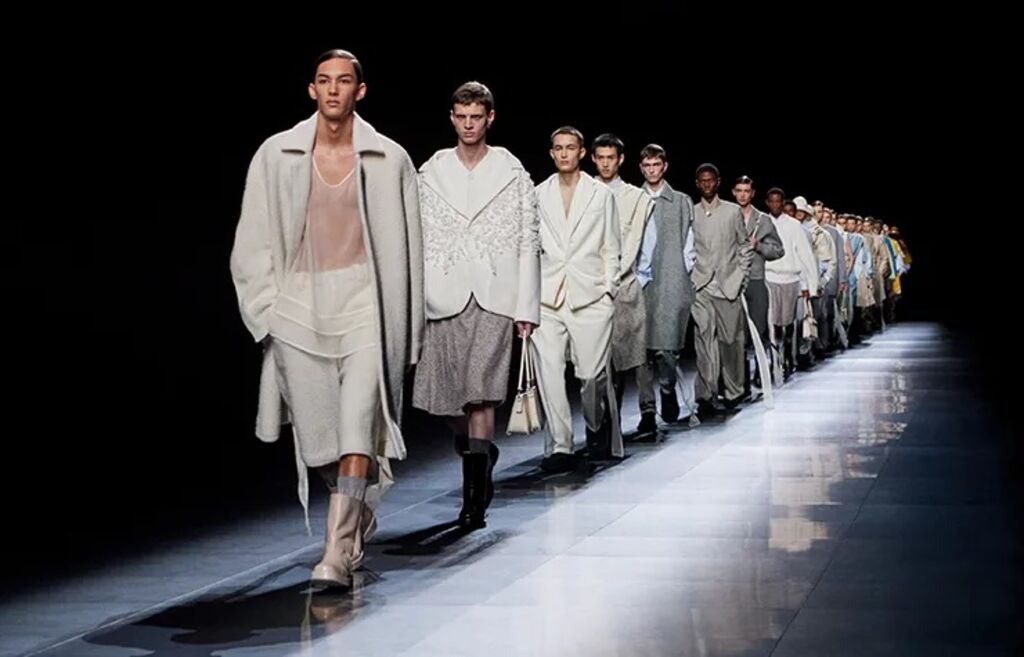 "Le message est simple : tout tourne autour du vêtement", a expliqué le Britannique Kim Jones, qui célèbre par cette collection ses cinq ans à la tête de la mode masculine de Dior.