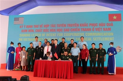 | Signature d’une lettre d'intention sur la coopération en matière de communication pour surmonter les conséquences des bombes, mines et produits chimiques toxiques après la guerre du Vietnam. |