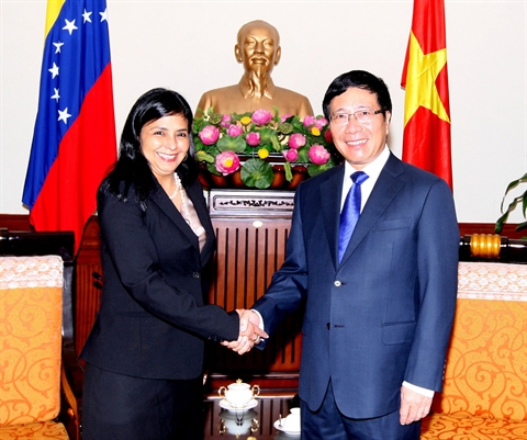 | Le vice-Premier ministre et ministre des Affaires étrangères Pham Binh Minh et la ministre vénézuélienne pour les Relations extérieures, Delcy Rodriguez. |