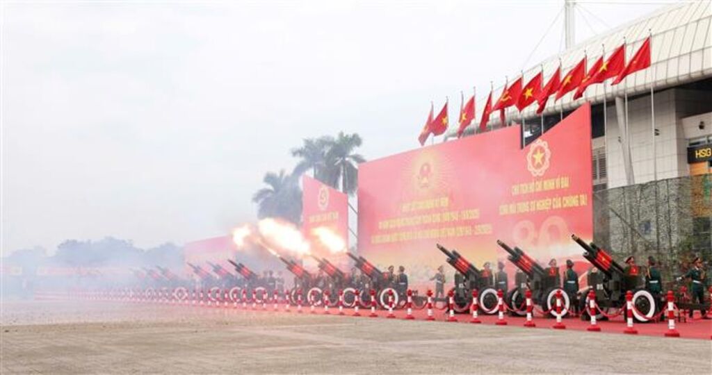 | Vingt-et-un coups de canon ont retenti pour marquer l’ouverture officielle de la cérémonie nationale du 2 septembre, sur la place Ba Dinh à Hanoï. |