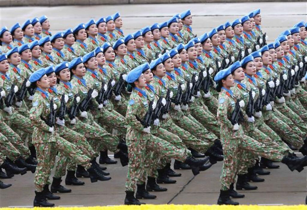 | Le bloc féminin de maintien de la paix du Vietnam défile avec fierté. |