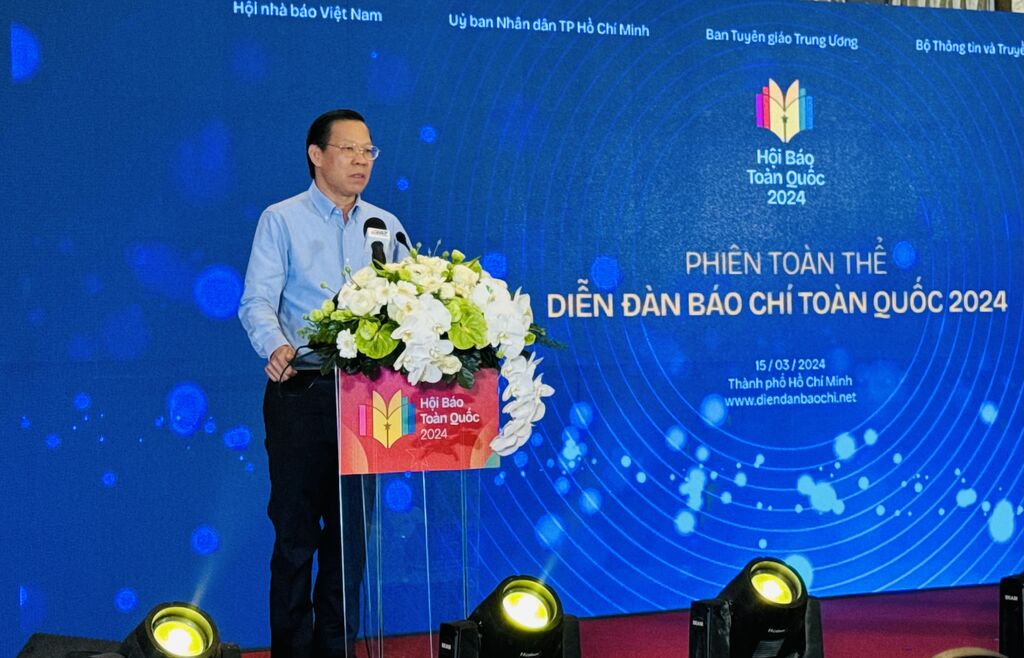 | Le président du Comité populaire de Hô Chi Minh-Ville, Phan Van Mai, a pris la parole à l'ouverture du Forum national de la presse 2024. |
