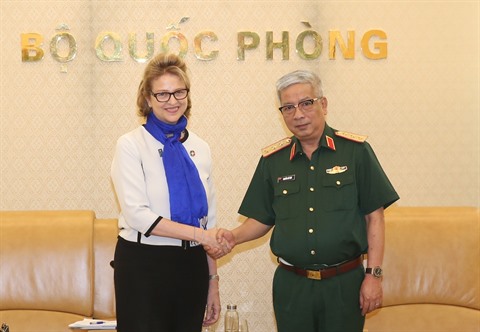| Le général de corps d’armée Nguyên Chi Vinh, vice-ministre de la Défense, et Mme Caitlin Wiesen, représentante permanente du Programme des Nations Unies pour le développement au Vietnam. |