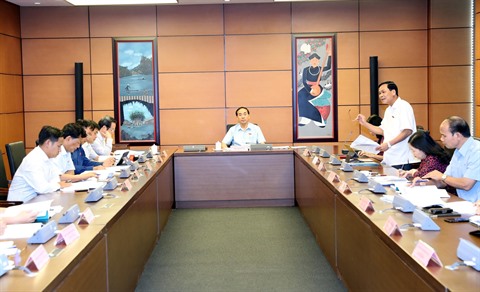 | Les députés discutent en groupe sur le projet de Code du travail modifié, le 29 mai à Hanoï. |