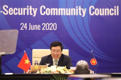 | Le vice-Premier ministre et ministre des Affaires étrangères Pham Binh Minh préside le 24 juin une réunion en ligne du Conseil de la Communauté Politique -Sécurité de l'ASEAN. |