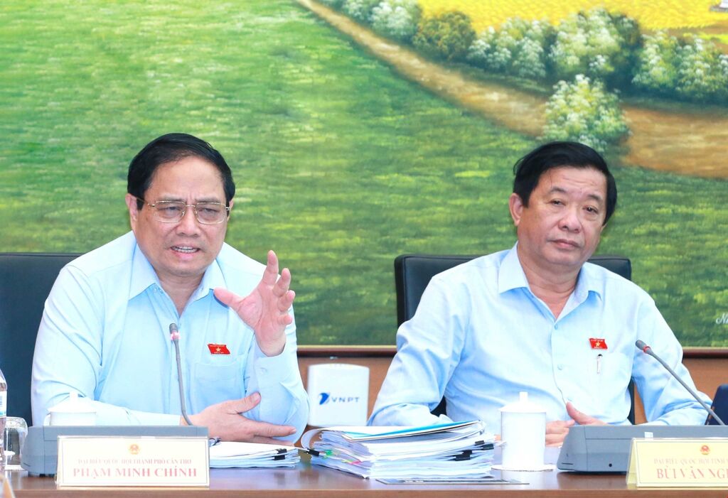 Lors d'une discussion en groupe, le Premier ministre Pham Minh Chinh a consacré beaucoup de temps à aborder avec les députés des questions liées à l'investissement pour le développement et la réponse au changement climatique dans la région du delta du Mékong.