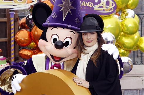 | L’actrice mexicaine Salma Hayek pose avec un Mickey du Disneyland Paris. Photo : AFP/VNA/CVN |