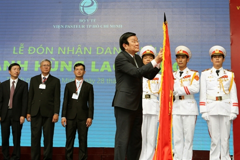| Le président du Vietnam, Truong Tân Sang, a remis le 28 juin le titre de Héros du Travail pour l’Institut Pasteur de Hô Chi Minh-Ville. |