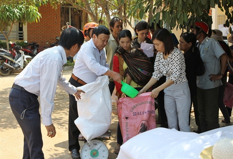 | Distribution de riz aux foyers sinistrés de la sécheresse à la commune de Cu Pong du district de Krong Puk, province de Dak Lak (hauts plateaux du Centre). Photo : Duong Giang/VNA/CVN |